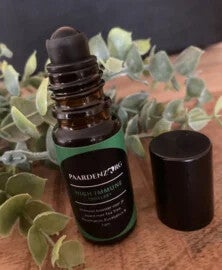 Toepassing: schud eerst het flesje zodat de oliën goed met elkaar vermengen en de oliën geactiveerd worden. Controleer even met je vinger of het rollertje op het flesje goed rolt. Rol daarna 2-3 keer met de roller over de ruggengraat van je paard, van schoft naar staartaanzet. Masseer de oliën een beetje in door tegen de haarrichting in van staart naar schoft met je vingers cirkeltjes te maken over de ruggengraat. Daarna strijk je de vacht van je paard weer goed.